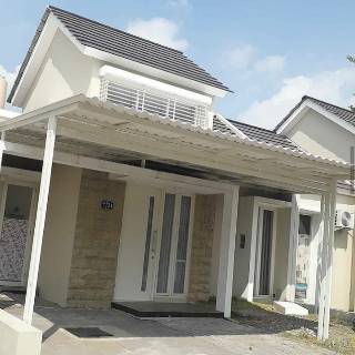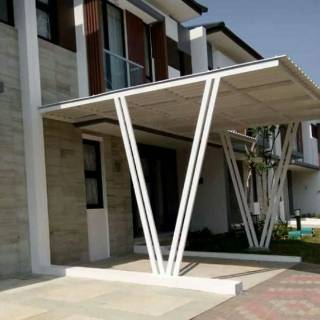 Kanopi rangka baja ringan atap genteng metal.